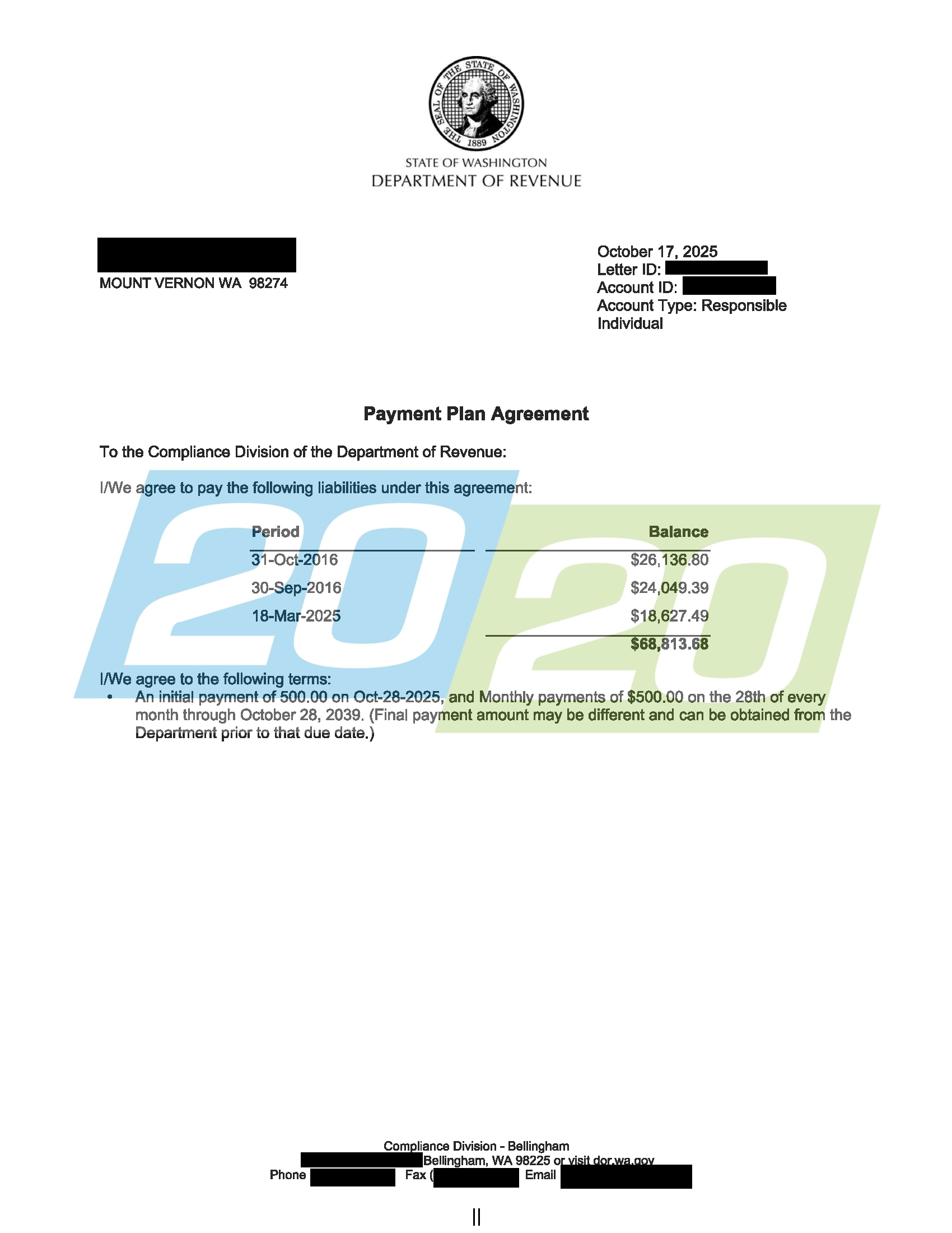 20/20 Tax Resolution successfully negotiated a Payment Plan with the Commissioner of Revenue of the State of Minnesota for a client in Zimmerman, Minnesota. 20/20 Tax Resolution negotiated payments of $250 per month on a liability totaling over $51,000. Please click the thumbnail to the right for more details.
